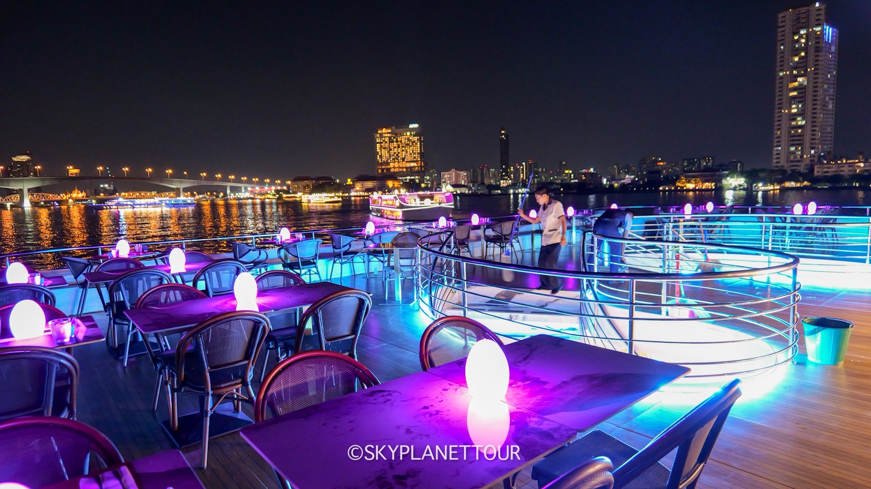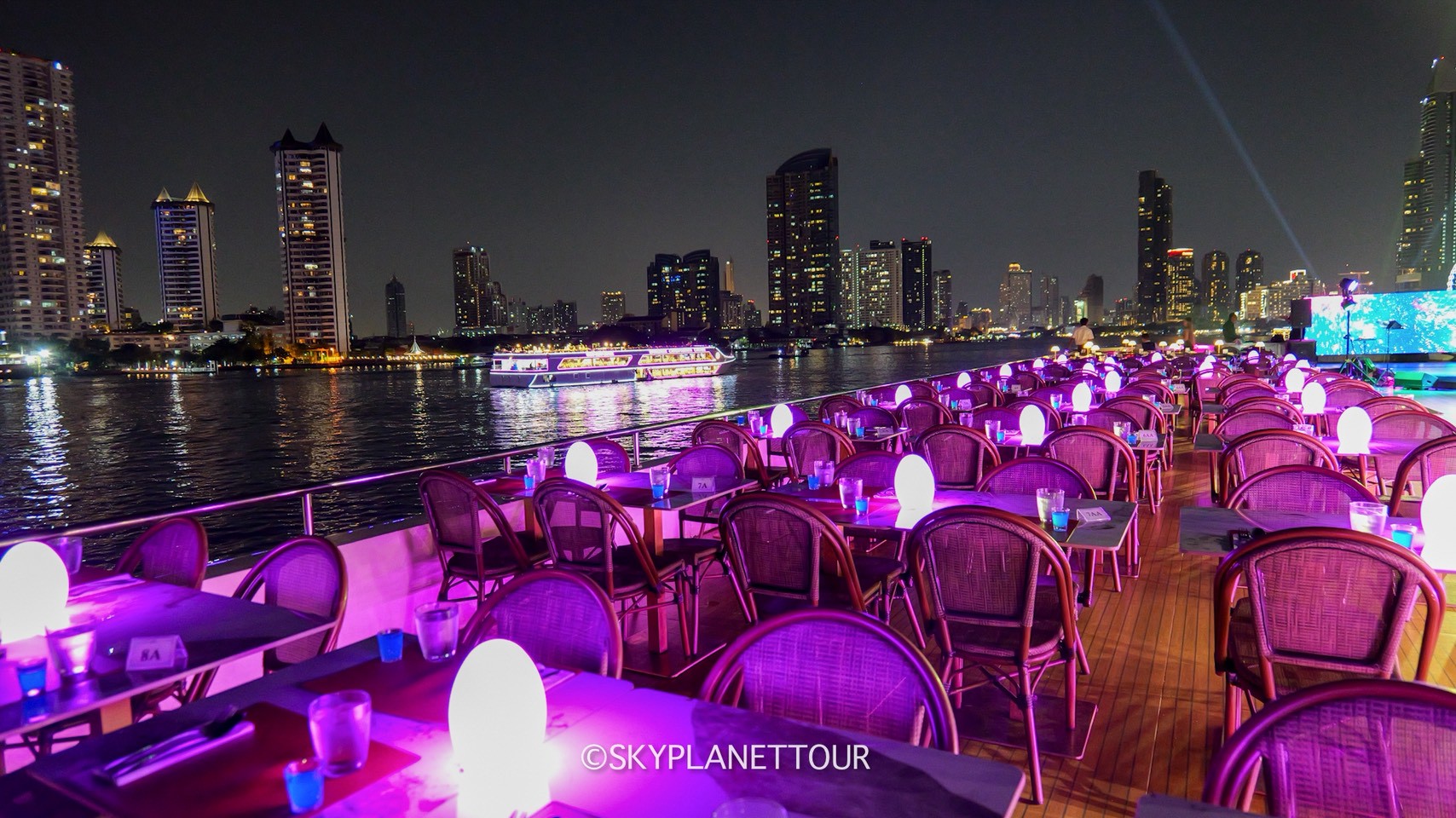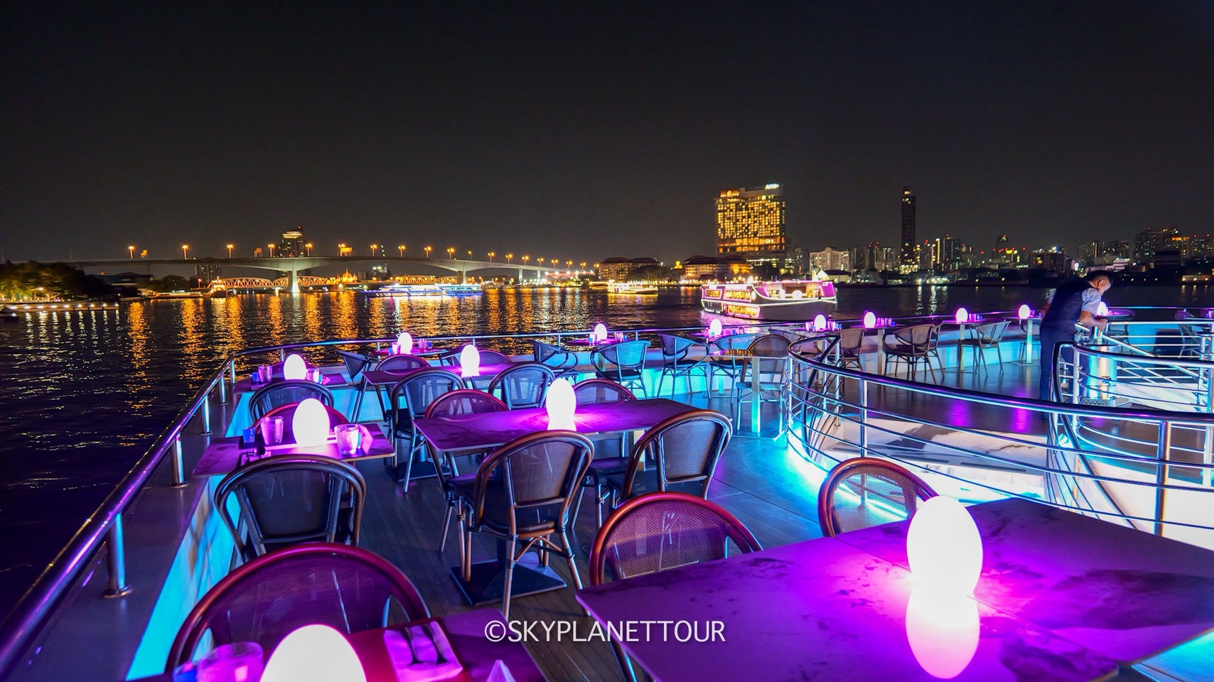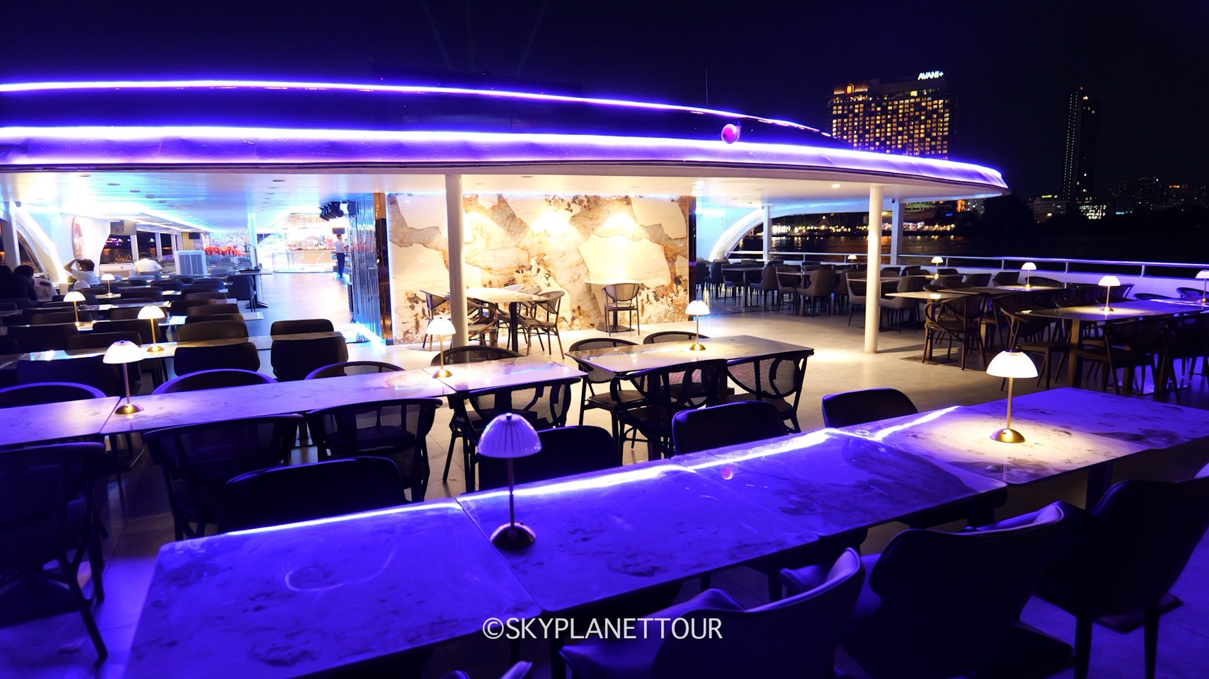 THE PLANET CRUISE : เรือลำใหม่ 3 ชั้น ชั้นบนเป็นดาดฟ้า ชั้นสองเป็น OPEN AIR และ หัวเรือ ชั้นล่างเป็นห้องแอร์