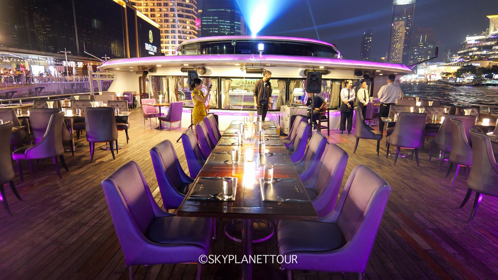 ท่าเรือ: ริเวอร์ซิตี้ เจริญกรุง 24 (River City) เรือเทียบรับ 19.15-19.30 ส่งกลับ 21.30-21.45 น ลงทะเบียน เวลา 18.00-19.00 น (แนะนำถึงก่อนเวลาเรือ 15-20 นาที) ราคาโปรโมชั่น ผู้ใหญ่: 1,350.-/ท่าน เด็กโต (4-10 ขวบ) : 1,150.- /ท่าน เด็กเล็กฟรี ต่ำกว่า 4 ขวบ ต่างชาติ 𝐀𝐝𝐮𝐥𝐭: 2,000 baht 𝐂𝐡𝐢𝐥𝐝 (4-10 years ): 1,400 baht Under 4 Year Free of Charge